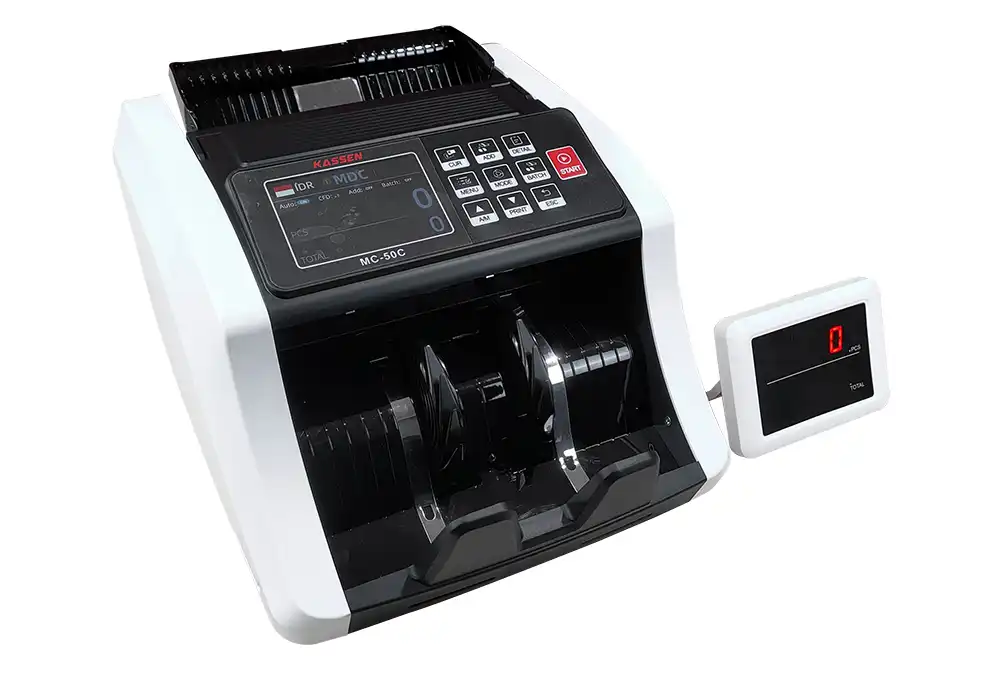 The Kassen MC-50C is also capable of calculating various kinds of rupiah denominations starting from denominations of 1,000, 2,000, 5,000, 10,000, 20,000, 50,000 and 100,000. In addition, the MC-50C is also equipped with an additional external display that can be shown to your customers so they can also find out about the counting process.